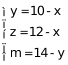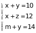 如上图所示,设标注的四条边长分别为x、y、z、m,由长方形A、B、C的周长分别是20米、24米、28米,可得: