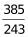=243(C、D分母486、729是243的倍数,可以通过约分得到243,此时不能肯定答案一定为B)。观察分子,变化幅度较大,简单计算倍数(两项之间作商),商数列为:1,2.5,4,5.5,( ),构成公差为1.5的等差数列。所以分子上的商数列应为:1,2.5,4,5.5,7。原数列所求项分子应为55×7=385。原数列所求项为