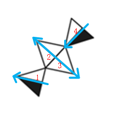 本题考查四面体的展开与折叠。将左侧展开图的面依次标上序号,并沿图中三角形已有的高标上箭头表示方向,如下图所示。