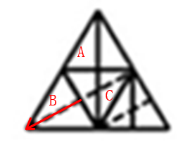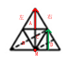 则箭头的尾部对应C面,箭头尾部的左侧顶点对应C面中黑色线条的端点。将该项立体图形的左面同样标上箭头,如图所示: