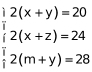 如上图所示,设标注的四条边长分别为x、y、z、m,由长方形A、B、C的周长分别是20米、24米、28米,可得: