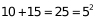 ,即以中间一项为中点,左右对称的两项加和为平方数。因此所求两项加和应为