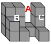 其次将立体图形③嵌入位置A,将立体图形②上下翻转180°后嵌入位置B,故空缺的位置C对应选项中的C项,将其拼接在位置C以后,可得一个完成的立方体,如下图: