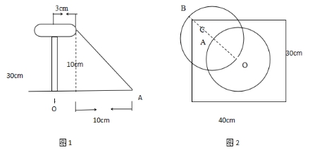 蘑菇长成之后如图1所示,菌盖的半径为3cm,高为10cm,由于蘑菇是沿着与水平面45°角的方向向下喷射孢子。所以落在长方形的花盆中是呈以O为圆心,以OA为半径的圆形。