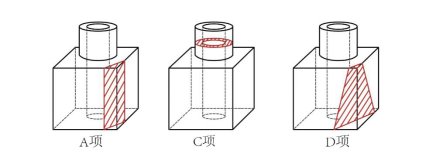 A项、C项和D项,均可以通过切割得到,如图所示;B项,无法通过切割得出。