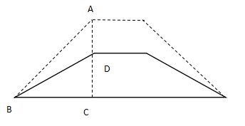 几何问题。如图所知,已知“水库大坝的迎水面的坡角为α,坝高为10米”,则DC=10米。在△DBC中,tanα=,则BC=。已知“现在要增高大坝,使坡度为1∶1(坡度坡角的正切值)”,则AC=BC=,则AD=AC-DC=-10。因为cotα=,所以AD=-10=10cotα-10米。