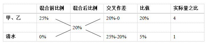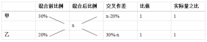 溶液问题。设甲乙首次混合之后的浓度为x,根据十字交叉解题方法: