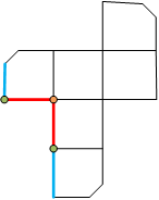 【思路】A项,可以由左边的立体图形展开;B项,可以由左边的立体图形展开;D项,可以由左边的立体图形展开。C项,如下图所示,从黄色顶点出发,只能引出三条棱,其中有两条已经固定了,则剩下的两条红色边重合,变成立体图形的另一条棱。绿色的端点也重合成另一个端点,因此两条蓝色的边重合在一起,但是两条边一长一短,故不能折叠成左侧立方体。