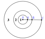根据题意可知小波将米粒投进圆圈内的成功率达到100%。若投入环形区域3,则看电影;若投入环形区域2,则看书;若投入圆形区域1,则打篮球,题干要求小波周末不在家看书的概率,即求环形区域3和圆形区域1的面积之和占整个大圆面积的比重。赋值大圆半径(OC)为4,则小圆1半径(OA)为1,中圆半径(OB)为2,则所求比重为。