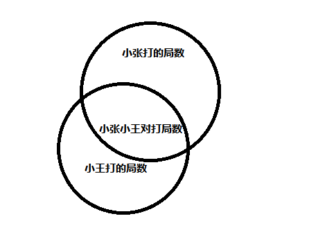 容斥问题。由题意知小李轮空四局,那么这四局一定是小张和小王对打。又小张打了6局,小王打了9局,故可画出如下图所示的韦恩图。由于小张打的局数是他和小王、小李打的局数之和,小王打的局数是他和小张、小李打的局数之和,故由容斥原理可得总局数=小张打的局数+小王打的局数−二人对打局数,故总局数=9+6−4=11局。小李有4局轮空,所以小李打了11−4=7局。