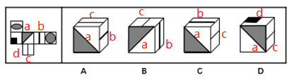 A项:以a面为基准,则顶面应为b,非c,排除。