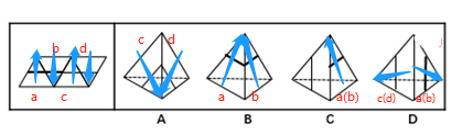 C项:无法确定粗线所在面为a面还是b面,但是观察可知,不管a面还是b面,箭头所指方向都应该为三角形右下角,排除。