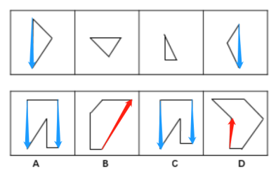 B项中标红的线在题干四个小图形中找不到对应的边,故排除;题干第一个和第四个图中标蓝的线为一对竖直方向的平行线,但长度不同,D项中只有一条纵向的线,且有略微倾斜角度,排除;A、C项中标蓝的两对竖直方向平行线,但A项的长度相等,排除。