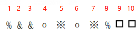 题干中,位置1、8的符号相同;位置2、3的符号相同;位置4、6的符号相同;位置5、7的符号相同;位置9、10的符号相同。