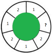最值问题。因为大圆与另外7个区域都相邻,所以大圆单独占一种颜色。如下图所示,问号处无论填充1还是2都会与邻区重复,所以还需再多一种颜色,所以至少共需要4种颜色。
