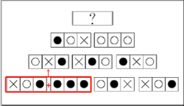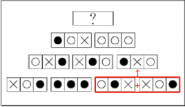 加为黑,黑色与×叠加为白,类比此规律观察第二层,也满足该叠加规律,所以问号处应由第三层按此规律叠加。