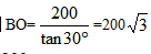 米;直角三角形AOC中,已知AO=200米,∠ACO=45°,则