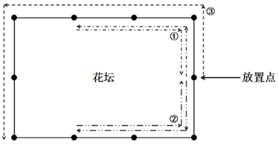 简单计算。根据封闭图形间点数和段数之间的计算关系可知,该长方形花坛一共需要1000÷100=10个垃圾桶,也就意味着需要运送9个垃圾桶,此时行程最短。最短行程按照如图进行(本题并未给出花坛的长与宽,相邻两点间距离均为100米,故不影响整体计算):