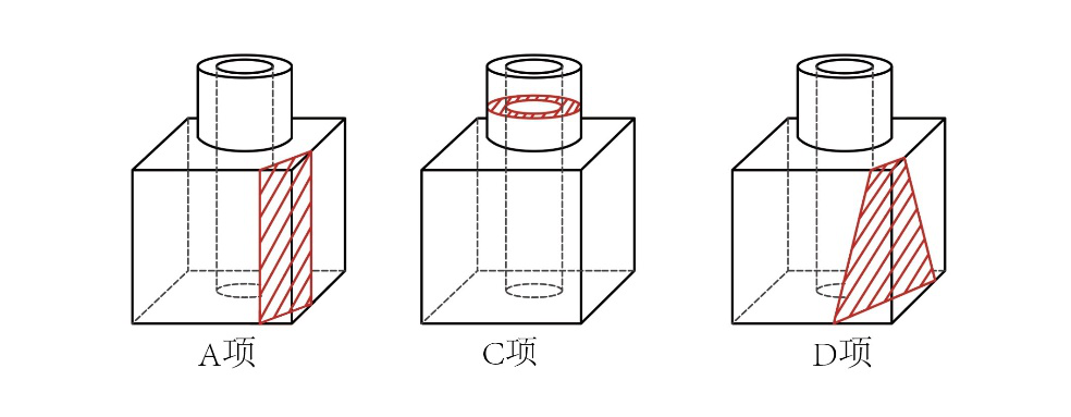 A项、C项和D项,均可以通过切割得到,如图所示;B项,无法通过切割得出。