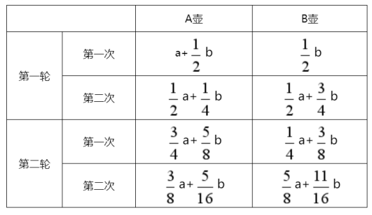 方法二:代入法,代入选项A,,设a=1,b=2,则两轮后,A中剩余量为=1,b=2,符合题意,当选,同理,代入BCD项,均不符合题意。