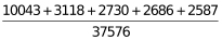 本题题干为“2019年5月,平台受理量排名前五的行业占受理总数的比重约为”,结合材料数据和时间可知本题考查现期比重计算。通过材料可得:2019年5月,全国12358价格监管平台受理价格举报、投诉、咨询共计37576件;平台受理量排名前五的行业分别为停车收费(10043件),商品零售(3118件),交通运输(2730件),社会服务(2686件),物业管理(2587件)。结合公式:
