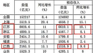 本题题干为“2015年江苏、浙江、江西三省的税收收入平均增速是百分之几”,考查增长率问题,但是与一般增长率不同的是三省的税收收入平均增长率=