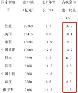 可知欧盟、美国、日本、印度、俄罗斯五个国家比重上升。