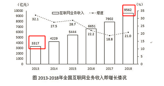 2013年全国互联网业务收入×2018年全国互联网业务收入,所以,2023年全国互联网业务收入=2018年全国互联网业务收入×9562×≈,与B项最接近。