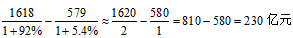 ,与1039亿元相差过大,不会是由约等造成的误差导致。B项错误,排除。