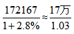 本题题干为“2013年末,该省公路里程约为多少万公里”,结合材料可知本题考查普通基期值计算问题。,根据第一段“2014年末,某省公路里程172167公里,同比增长2.8%”,代入公式可得,2013年末该省公路里程=,略小于17万,与B选项最为接近。