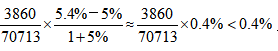 本题题干为“2015年,纺织行业规模以上企业主营业务利润率(利润总额/主营业务收入)比上年约”,结合材料可知本题考查两期比重问题。比重变化量=,根据第二段“2015年,纺织行业规模以上企业累计实现主营业务收入70713亿元,同比增长5.0%;实现利润总额3860亿元,同比增长5.4%”,代入公式可得,比重变化量=,结果为正数,所以是上升,小于0.4%,只有A选项符合。