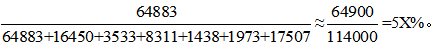 本题题干为“2016年末,长江水系内河航道通航里程约占各水系内河航道通航总里程的”,根据题干可知,本题考查现期比重计算问题。根据文字材料第一段“各水系内河航道通航里程分别为:长江水系64883公里,珠江水系16450公里,黄河水系3533公里,黑龙江水系8211公里,京杭运河1438公里,闽江水系1973公里,淮河水系17507公里”,以及公式:比重=