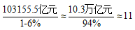 本题题干为“2014年1-3月,国有企业营业总收入最接近”,根据题干可知,本题考查基期值计算问题。结合,根据文字材料第一段“2015年1-3月,国有企业营业总收入103155.5亿元,同比下降6%”,代入公式可得,2014年1-3月,国有企业营业总收入为万亿元。