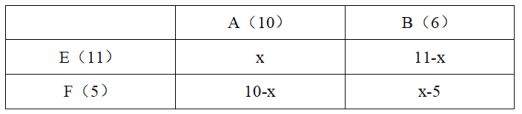 方法一:根据题意,设A地有x台机器配送到E地,其余机器台数列表如下: