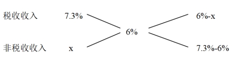 本题题干为“2016年1‒8月累计,全国一般公共预算收入中非税收入同比”,结合材料数据可知本题考查混合增长率。根据材料第二段“2016年1‒8月累计,全国一般公共预算收入110178亿元,同比增长6%;税收收入92637亿元,同比增长7.3%”,则非税收收入为110178-92637=17541亿元,设非税收收入增速为x,根据十字交叉法: