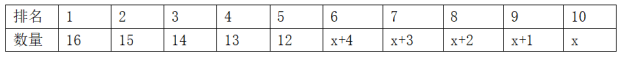 设专卖店数量排名最后的城市,最多有x家专卖店。要使x最多,则其他排名城市专卖店数量要尽量少,由排名第5的城市专卖店数量为12,且每个城市的专卖店数量都不同,则排名1‒ 4名的城市专卖店数量分别为16、15、14、13;由排名最后的城市专卖店数量最多为x,则排名第9的城市专卖店数量最少为(x+1)、排名第8的城市专卖店数量为(x+2)、排名第7的城市专卖店数量为(x+3)、排名第6的城市专卖店数量为(x+4);