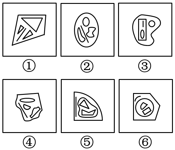 观察图形整体,题干图形均为包含多种元素的密闭图形且其中元素间的位置关系不同。根据内部元素的位置关系,可将其分为两组:①②④图形内部元素间不存在包含关系;③⑤⑥图形内部元素间存在包含的位置关系。