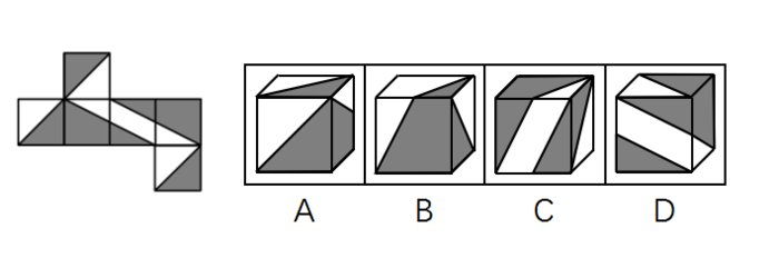 左图给定的是正方体纸盒的外表面,下面哪一项能由它折叠而成()