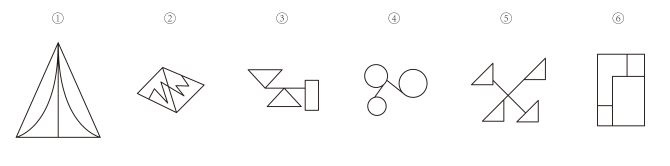 把下面的六个图形分为两类,使每一类图形都有各自的共同特征或规律,分类正确的一项是( )