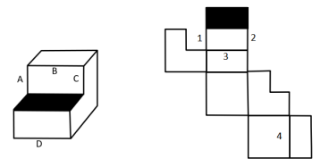 下图为给定的多面体及其外表面展开图,问字母A、B、C、D和数字1、2、3、4代表的棱的对应关系为: