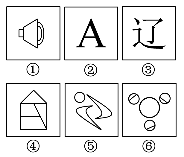 元素组成凌乱,考虑图形组成部分的数量。观察发现①②④均为一个整体,没有不相连的部分;而③⑤⑥都含有多个不相连的部分。