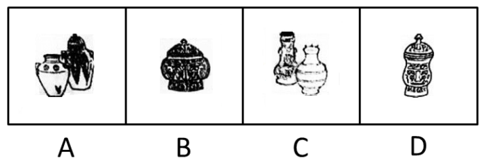 瓿是古代的一种盛酒器和盛水器,亦可用于盛酱。流行于商代至战国。圆体,敛口无颈,广肩,大腹,圈足,带盖,亦有方形瓿。根据上述描述下列器具中是瓿的是: