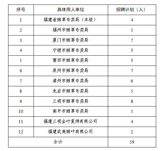 福建烟草2026年招聘公告出了!招聘高校毕业生59人!
