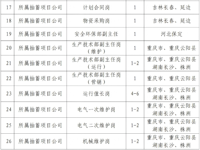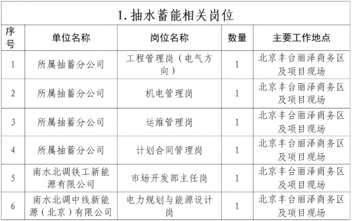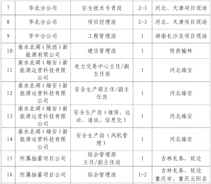 一、中国南水北调新能源投资有限公司招聘岗位一览表
