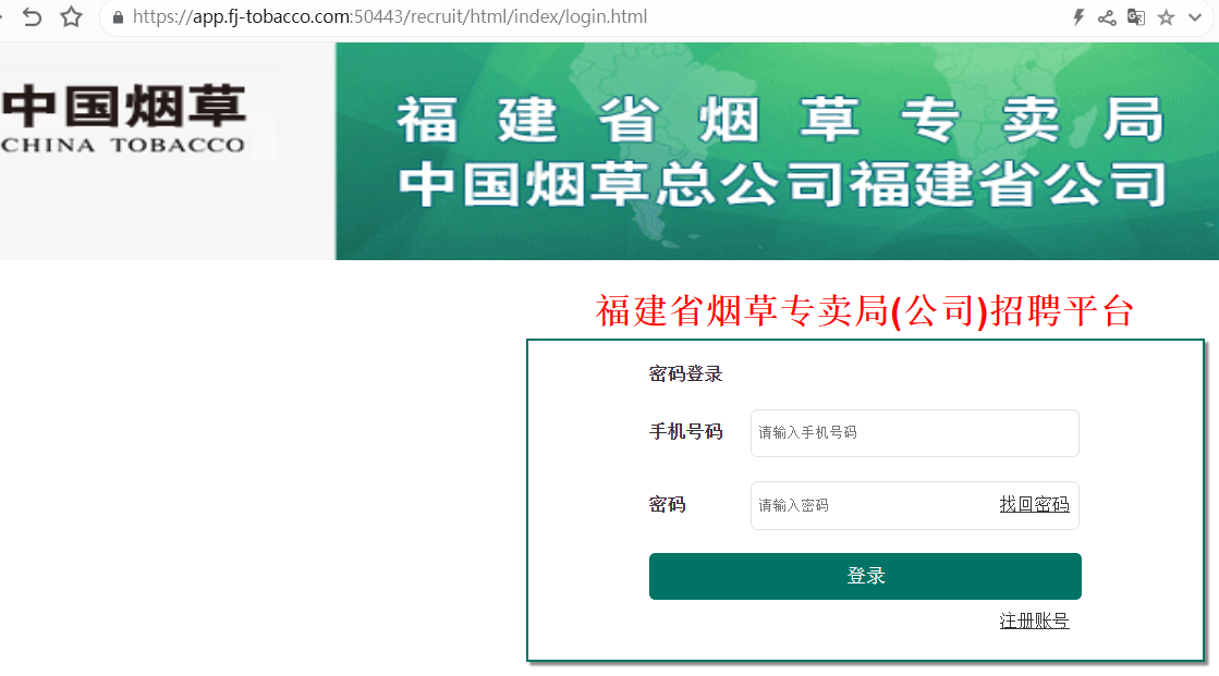 福建烟草专卖局2026招聘网申入口便是(https://app.fj-tobacco.com:50443/recruit/html/index/login.html),大家可以登录网站进行注册和报名,报名注意事项和材料也都已经整理好了,一起看看吧。