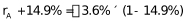 本题题干为“2017年,长江流域棉区棉花总产量同比约下降”,结合选项可知本题考察增长率计算问题。本题求总产量的增长率,材料给出每公顷单位面积产量(总产量/面积)的增长率,出现平均数的增长率,可用平均数增长率公式解决问题。根据第三段“2017年长江流域棉区每公顷单位面积产量减少39.5公斤,下降3.6%”可知,平均数增长率r=﹣3.6%;根据第二段“2017年长江流域棉花播种面积减少97.0千公顷,下降14.9%”可知,rB=﹣14.9%。 代入公式: