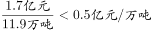 本题题干为“2017年12月表中所列矿砂及其精矿种类中,有几类的进口均价超过5000元/吨”,考察现期平均数问题。表格数据的单位为万吨、亿元,需要对题干数据进行转化,5000元/吨=0.5亿元/万吨;根据表格第2、3列可知2017年12月的数量和金额,代入公式: