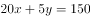 设采购20公斤装的x包、5公斤装的y包,根据“共购买150公斤大米”,可得等式