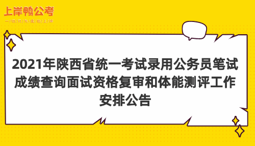 上岸鸭公考快讯!2021年陕西省统一考试录用公务员笔试成绩查询面试资格复审和体能测评工作安排公告已发布,具体内容如下: