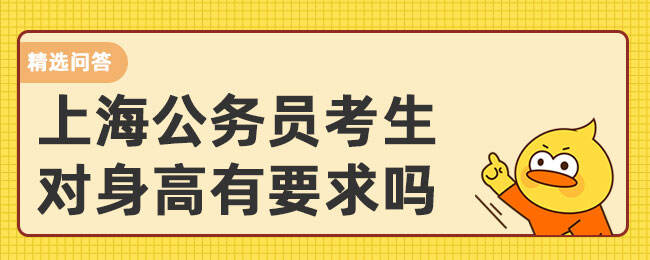 上海公务员考试是没有身高要求的。而且,在警察岗位中,也没有限定身高要求。但是,警察岗位需要体能测试,男生摸高265cm,女生摸高230cm,如果身高不够,弹跳力不行的话,摸高这项很难通过。因此,报考警察岗位的考生,应该先保证自己能过体能测试,再进行报考。
